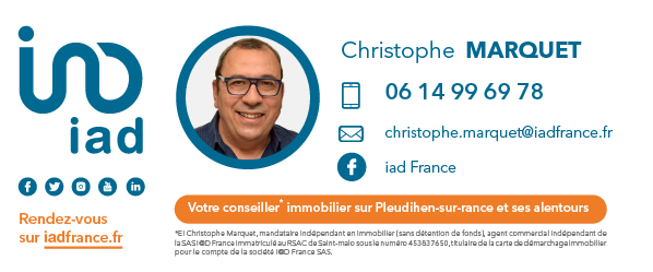 Je suis Christophe Marquet conseiller immobilier iad France à PLEUDIHEN-SUR-RANCE Je connais très bien ce secteur et ses particularités. Chaque jour, j’exerce avec passion et conviction ma profession de conseiller immobilier* indépendant à PLEUDIHEN-SUR-RANCE et ses alentours.